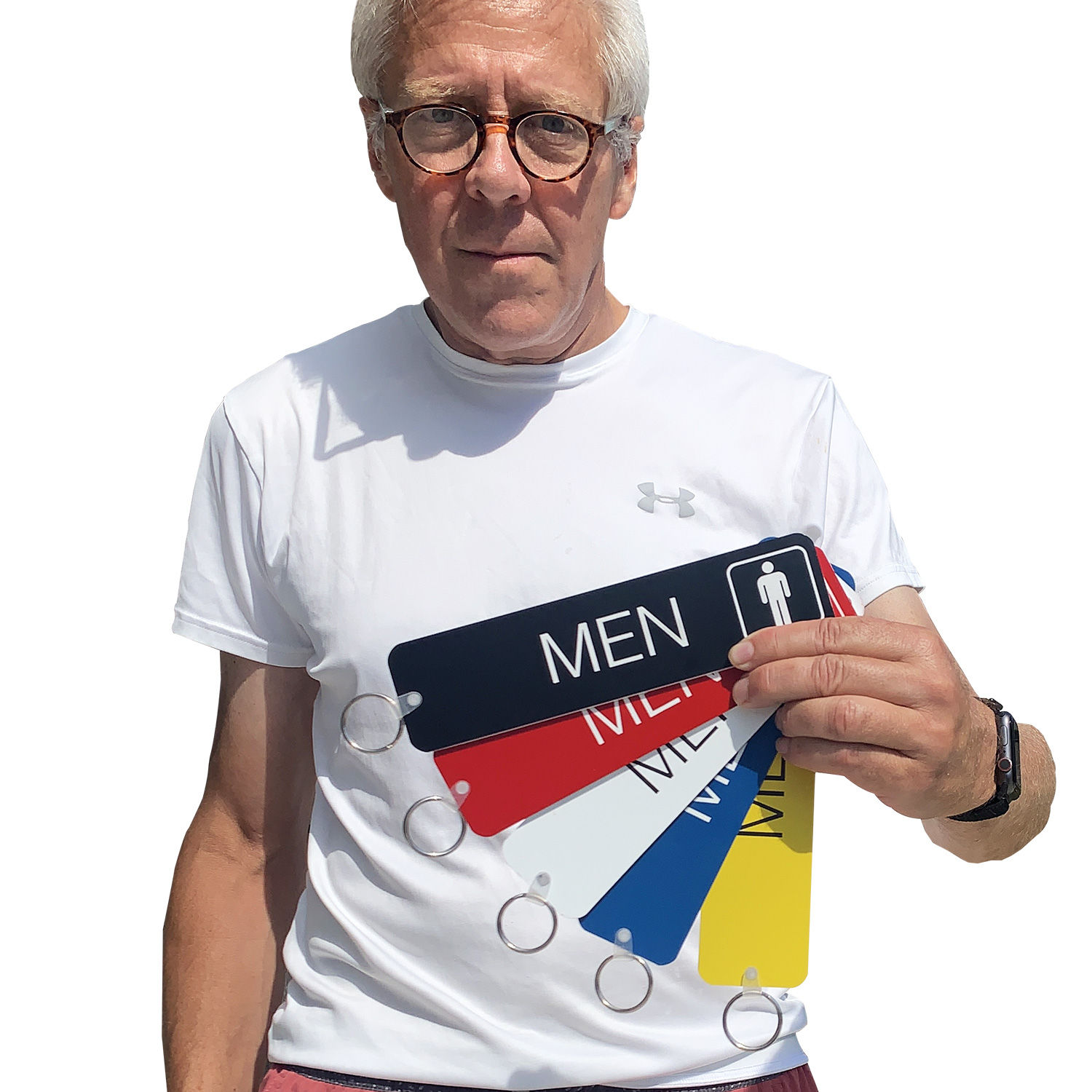 Keep the most important tool in your office where everyone can see it. Grab a double-sided bathroom keychain that helps you find your keys and do your business.