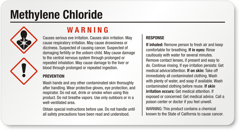 - View more GHS Methylene Chloride labels here.
