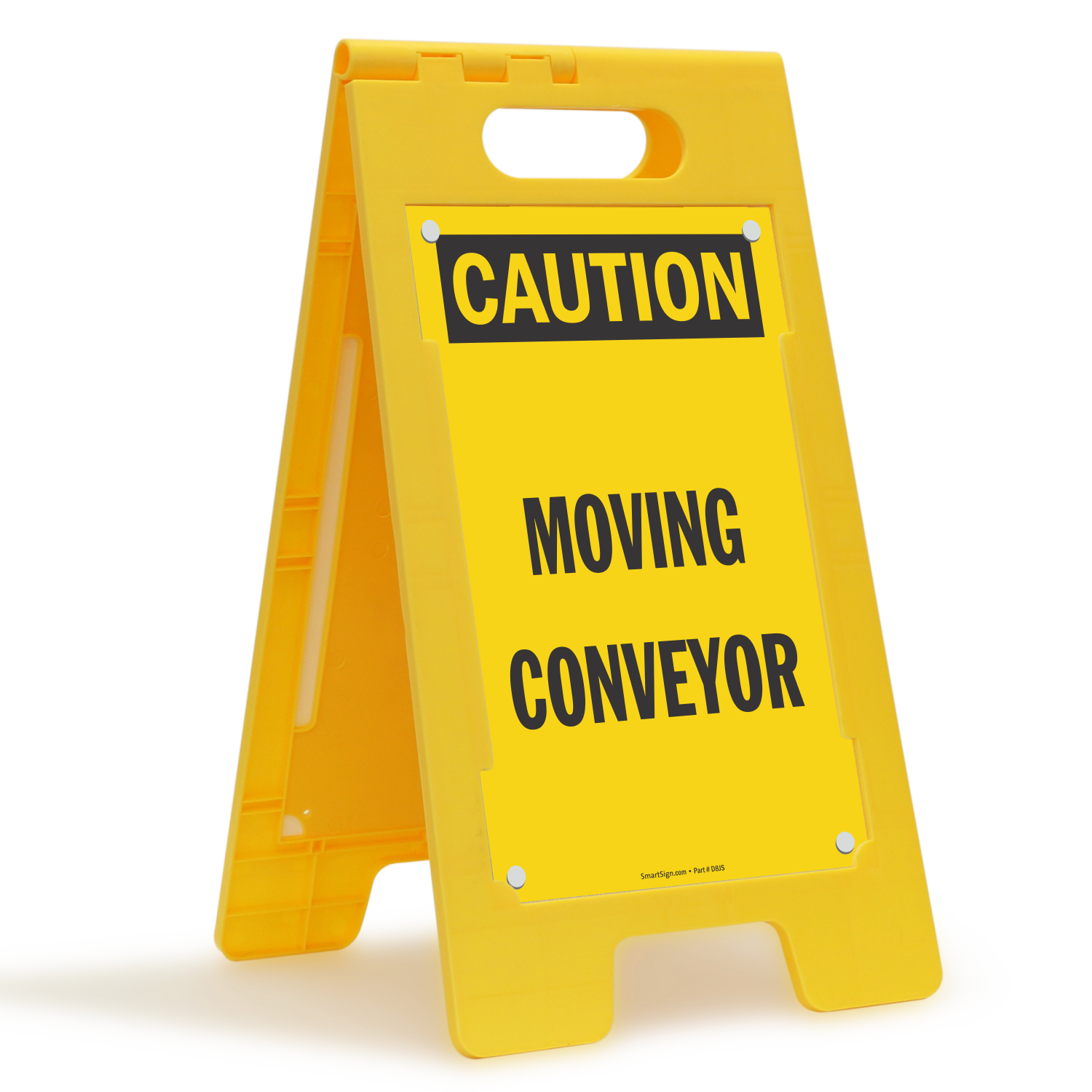 Hard to miss, this FloorBoss OSHA Caution Floor Sign will alert people to stay cautious around a moving conveyor.