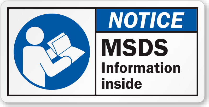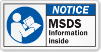Notify workers that they can find the material safety data sheet (MSDS) inside. Apply this ANSI label which has graphic of man reading a manual.