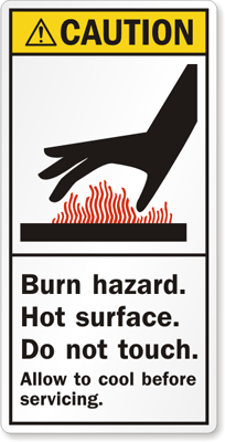 ANSI Caution Safety Label: Burn Hazard, Hot Surface, Do Not Touch, Allow To Cool Before Servicing LB-0306 Learn More...