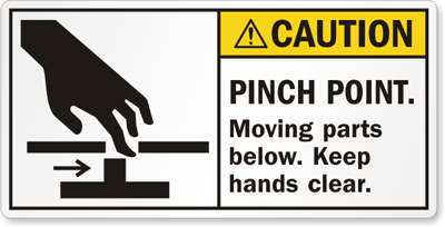 ANSI Hands Crush Caution Label: Pinch Point, Moving Parts Below, Keep Hands Clear LB-0156 Learn More...