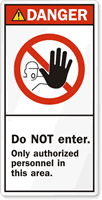 ANSI Danger Safety Label: Do Not Enter, Only Authorized Personnel In This Area LB-0246 Learn More...
