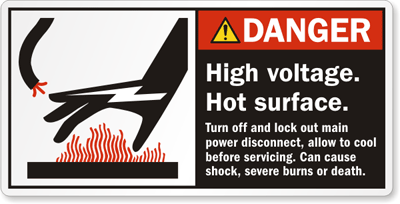Danger Safety Label: High Voltage, Hot Surface Turn Off And Lock Out Main Power Disconnect, Allow To Cool Before Servicing. Can Cause Shock, Severe Burns Or Death LB-0309 Learn More...