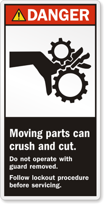 Danger Safety Label: Moving parts can crush and cut. Do not operate with guard removed. Lockout procedure before servicing LB-0363 Learn More...