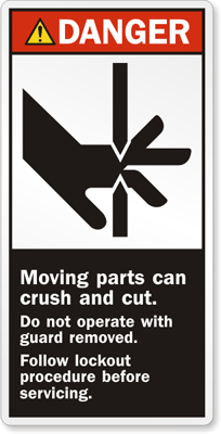 Cutting of Hand With Straight Blades ANSI Danger Label: Moving Parts Can Crush And Cut, Do Not Operate With Guard Removed, Follow Lockout Procedure Before Servicing LB-0189 Learn More...