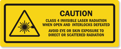 Caution Safety Label: Class 4 Invisible Laser Radiation When Open And Interlocks Defeated Avoid Eye Or Skin Exposure To Direct Or Scattered Radiation LB-0050 Learn More...