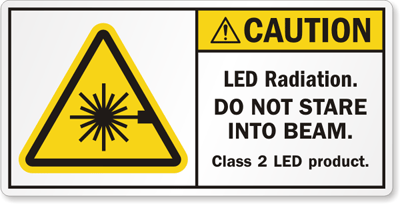 ANSI Caution Safety Label: LED Radiation, Do Not Stare Into Beam, Class 2 LED Product LB-0038 Learn More...
