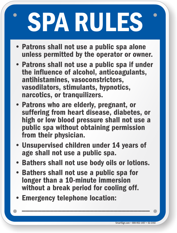 New Hampshire Spa Sign: Spa Rules S2-2192 Learn More...