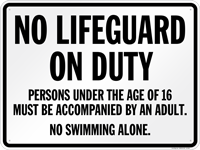 This New Jersey No Lifeguard on Duty Safety Sign is compliant with relevant state and/or local regulations. Please make sure you confirm your local authorities' requirements before purchasing. Available in a variety of materials.