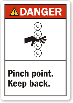 5in. x 3.5in. Laminated Vinyl Label: Danger - Pinch Point Keep Back (ANSI Style) L-0221-XV