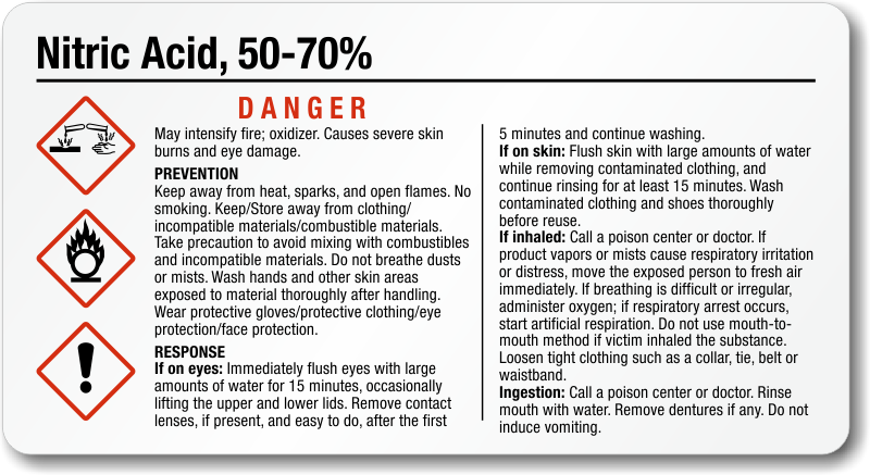 Communicate comprehensive chemical information about Nitric Acid to workers and comply with GHS standards.