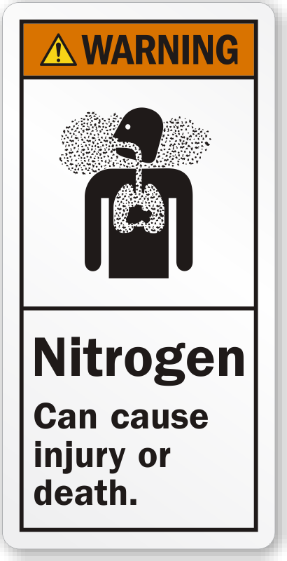 It's important that workers are aware of the hazards caused due to inhalation of Nitrogen. Apply this ANSI compliant label in the areas with nitrogen hazards so that workers can take preventive measures.