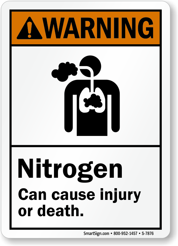 ANSI Warning Sign: Nitrogen Can Cause Injury Or Death (with Graphic) S-7876