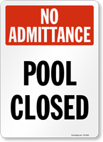 Swimming Pool Sign: No Admittance - Pool Closed S2-5325