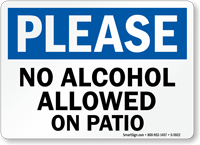 No Alcohol Sign: Please - No Alcohol Allowed On Patio S-5922