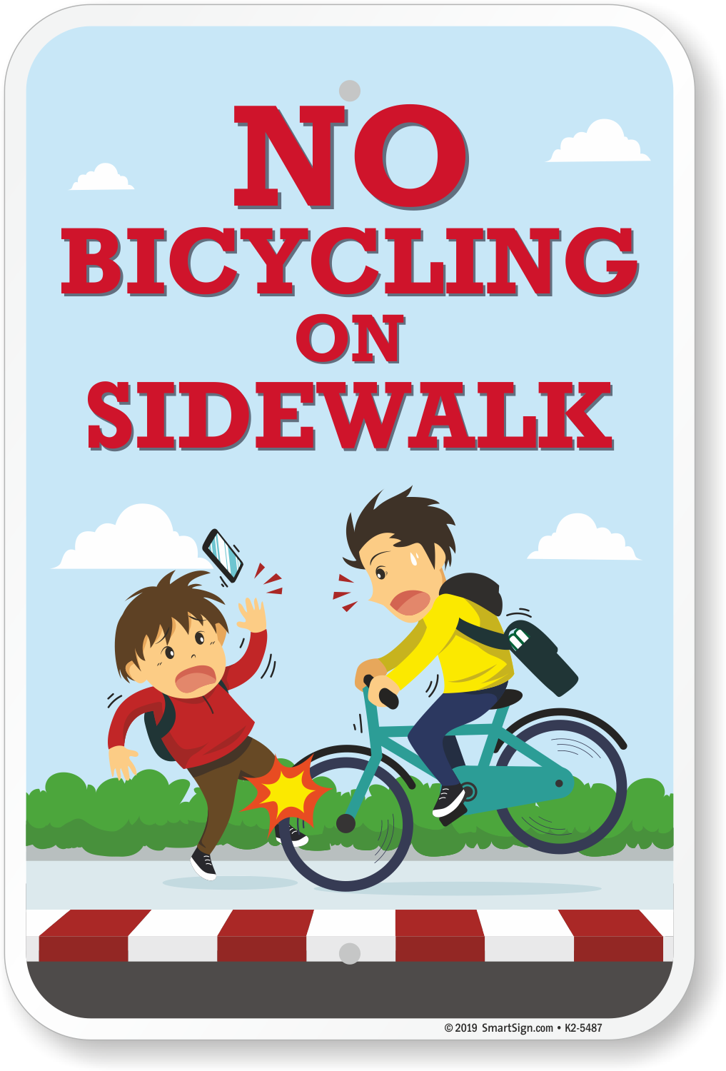 No Riding Bicycle Sign: No Bicycling on Sidewalk K2-5487