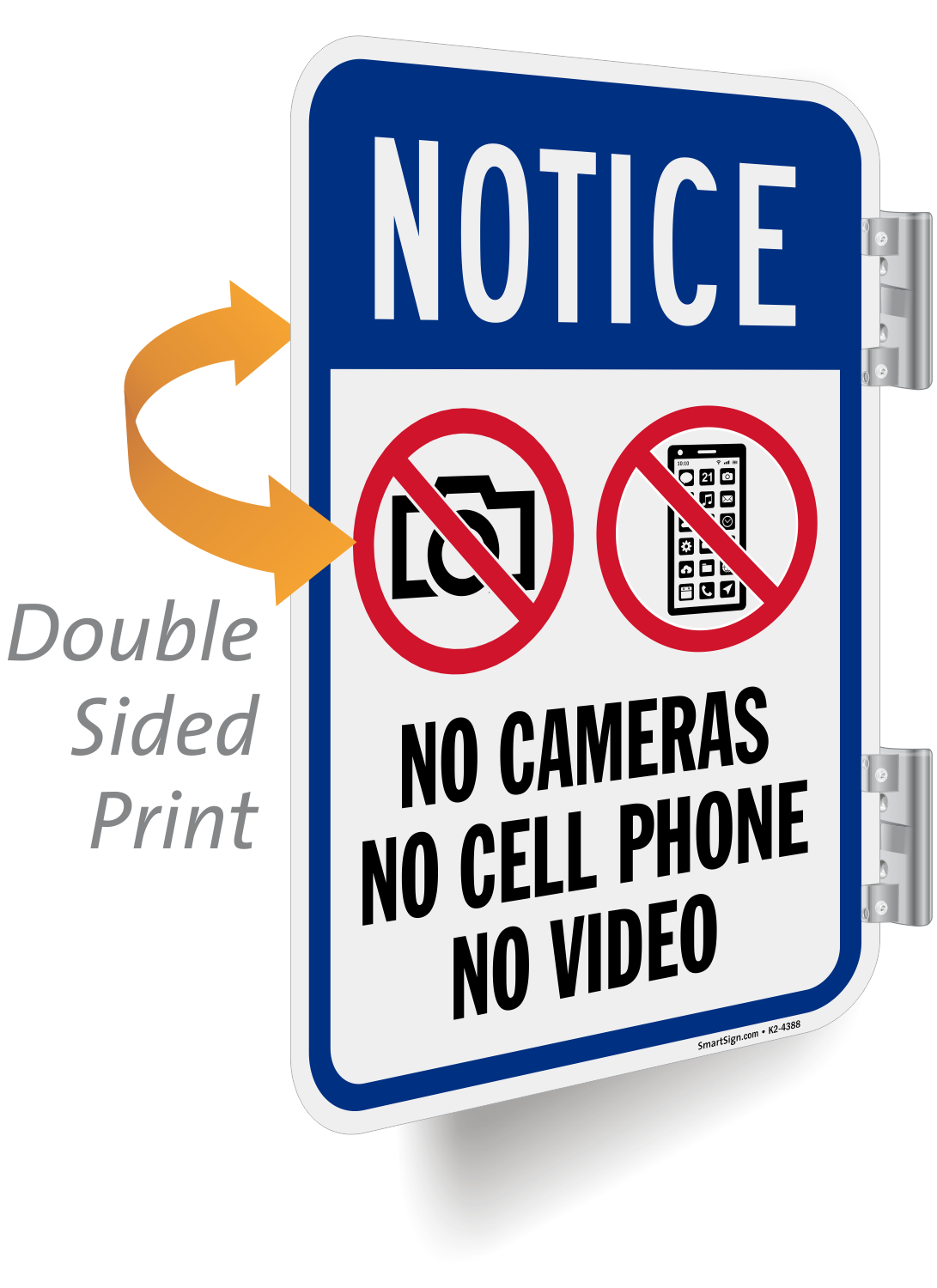 Double-Sided Sign: Notice No Cameras No Cell Phone No Video K2-4388
