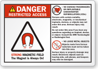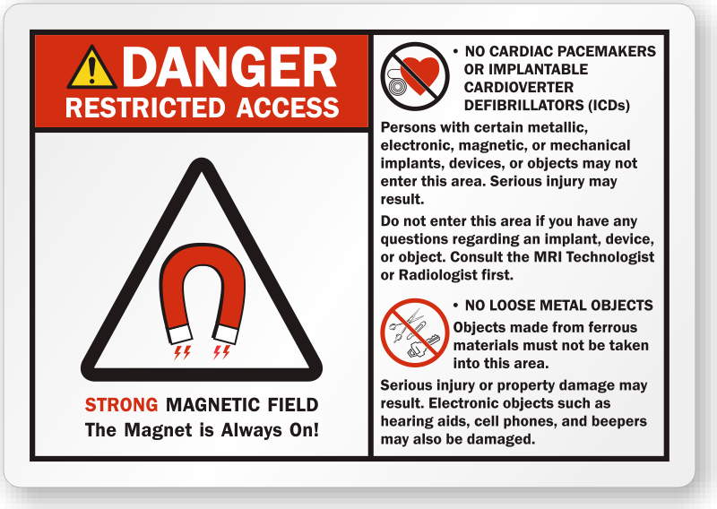 This ANSI Danger Restricted Access Label is great for areas with strong magnetic field. Comprehensive message leaves no room for confusion for patients wearing pacemakers or implantable cardioverter defibrillators (ICDs).