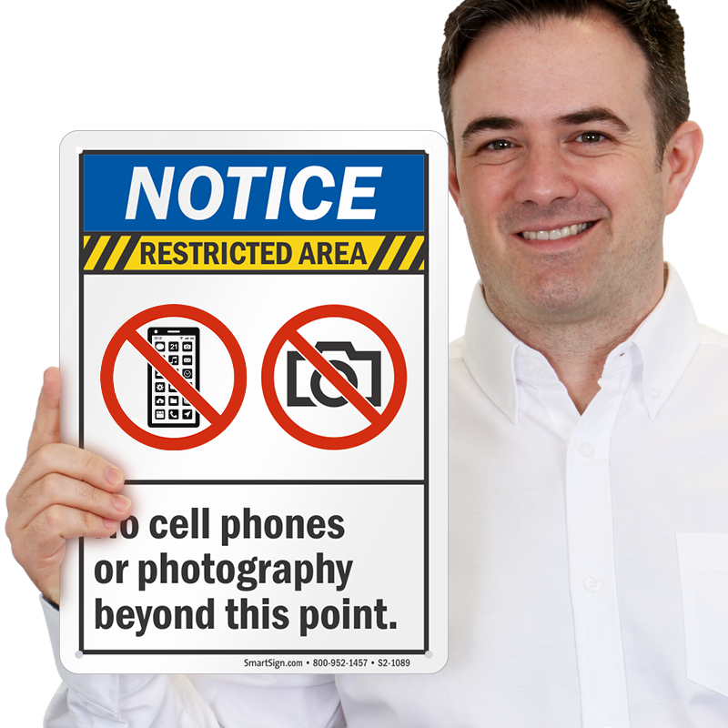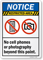 Put this ANSI Notice Sign at a conspicuous location to inform visitors not to carry their cell phones or click pictures in the restricted area of your property.