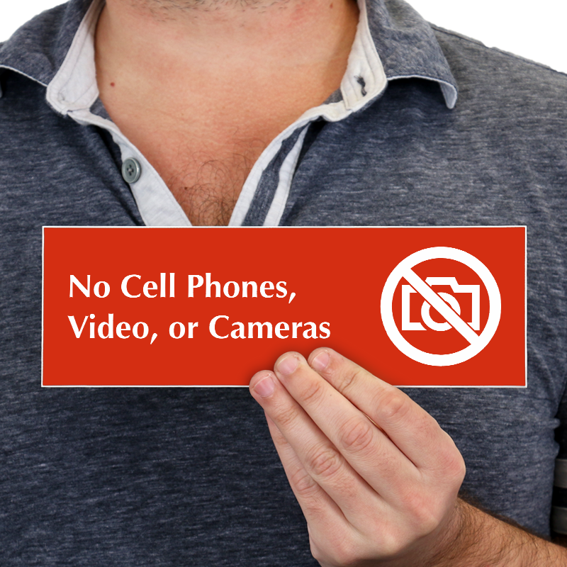 Select-a-Color Engraved Sign: No Cell Phones, Video, Or Camera (with No Camera Symbol) SE-5192