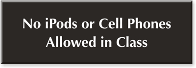 Select-a-Color Engraved Sign: No Ipods Or Cell Phones Allowed in Class SE-2575