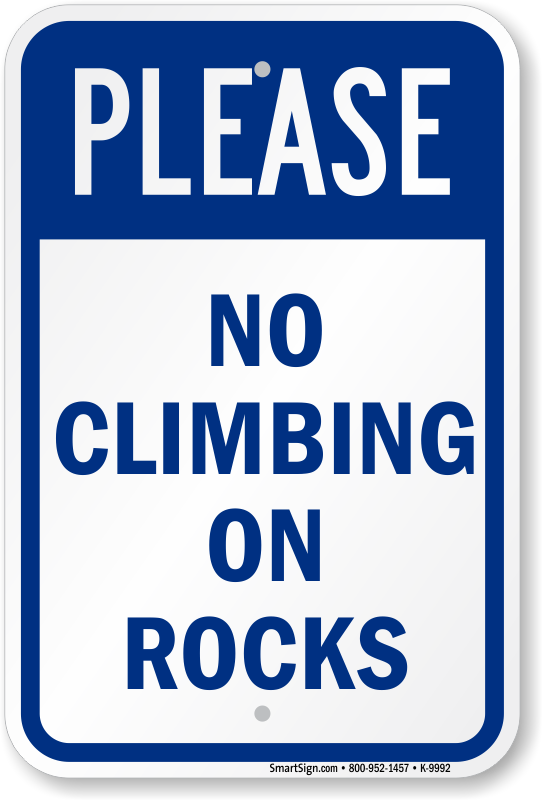Large, clear to read sign for an HOA to discourage children from climbing on very large boulders excavated by builder and placed along our walkway that connects to a public greenway pedestrian path. Our ins company suggested for liability situation.
