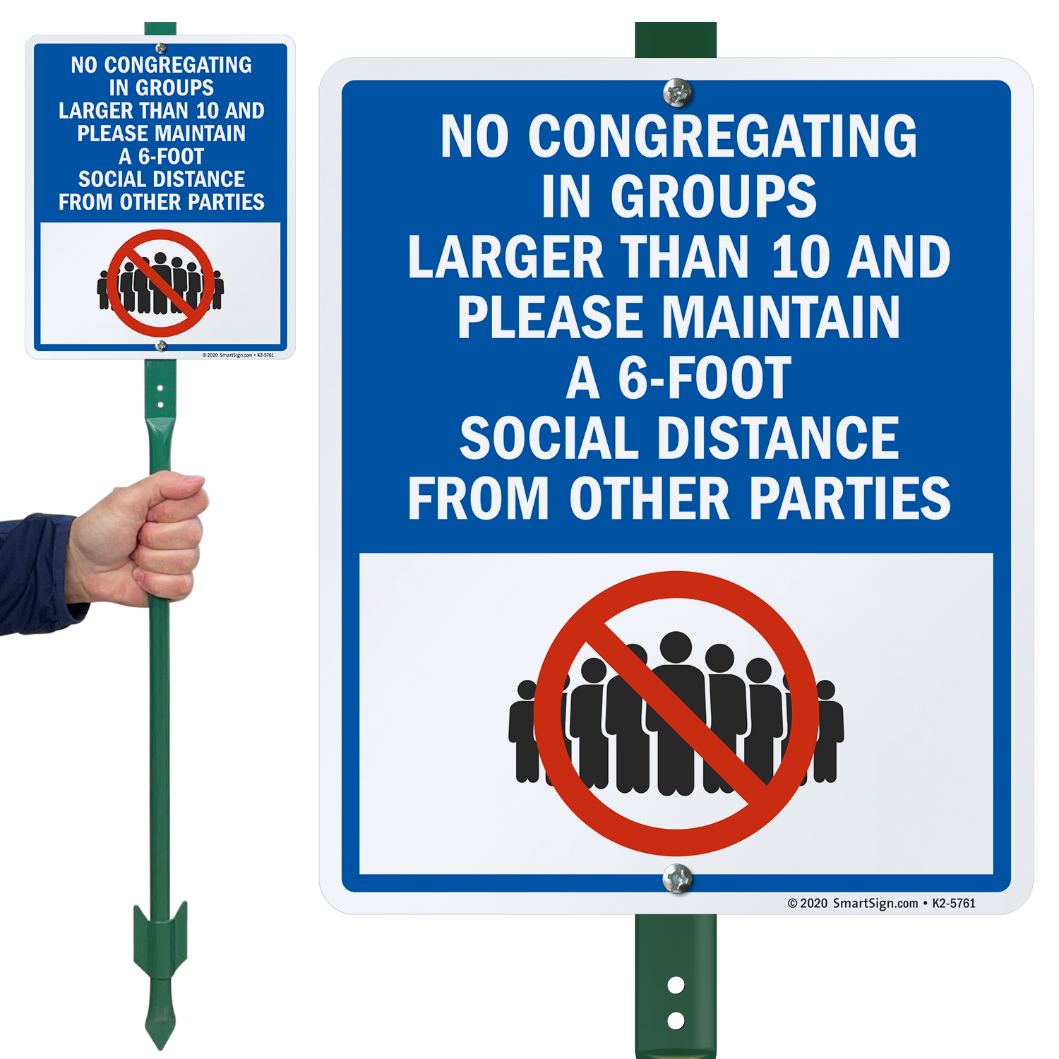 LawnBoss® Sign & Stake Kit: No Congregating In Groups Larger Than 10 And Please Maintain A 6-Foot Social Distance From Other Parties K2-5761 Learn More...