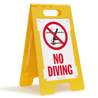 This "No Diving" FloorBoss Standing Floor Sign works even when you have no instructor or lifeguard present at the pool.