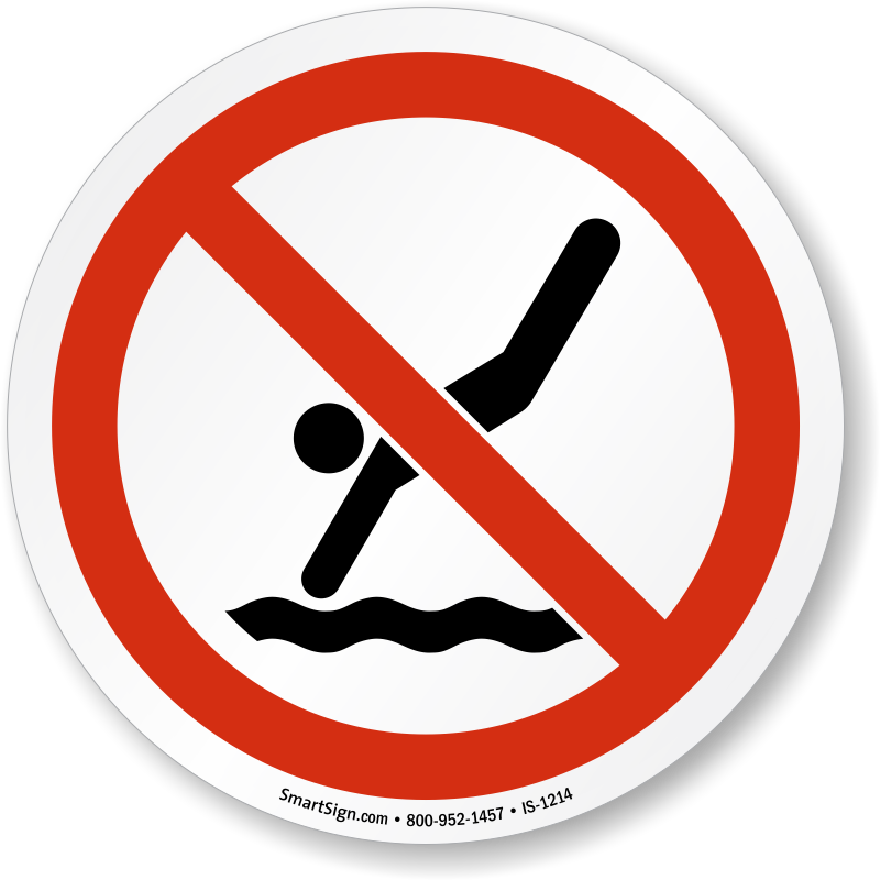 This ISO Prohibition Circular Sign with No Diving Symbol is a clear, understandable way to communicate your message.