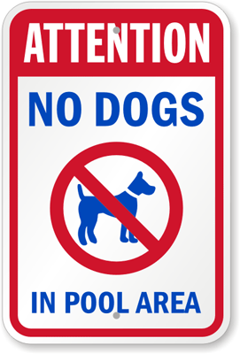No Dogs Sign: Attention No Dogs In Pool Area Sign K-7380 Learn More...