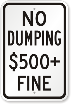 No Dumping Sign: $500+ Fine Sign K-9362-500P Learn More...