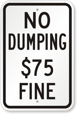 No Dumping Sign: No Dumping $75 Fine K-9362-75 Learn More...