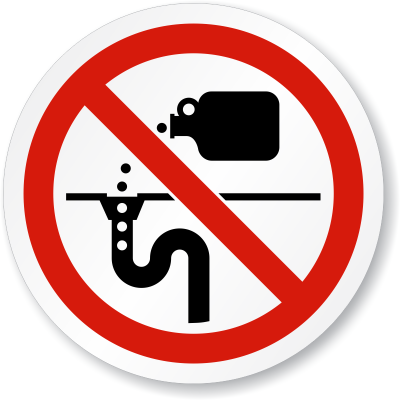 This ISO Prohibition Circular Sign with No Dumping (Drain) Symbol is a clear, understandable way to communicate your message.