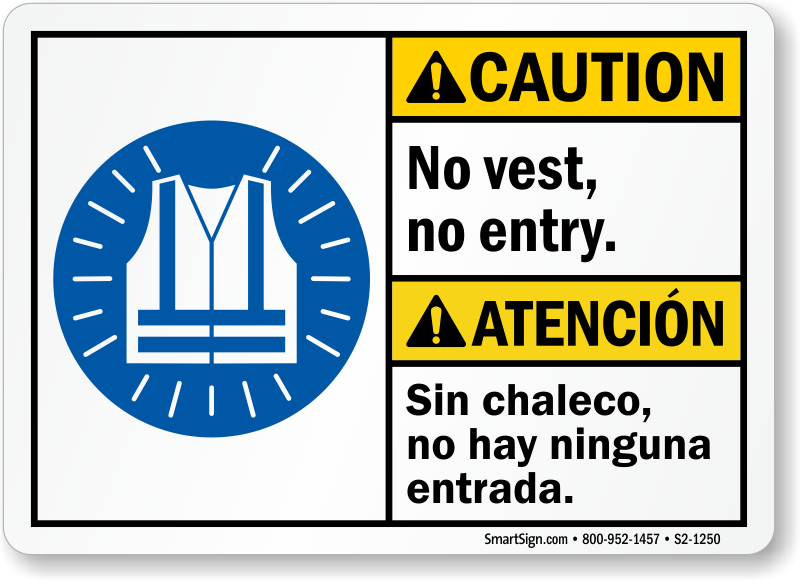 Use this Bilingual ANSI Caution Sign to inform your workers that safety vests are required before entering specific area at your workplace.