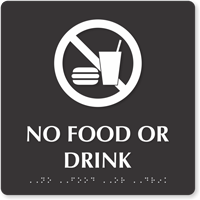 9" x 9" TactileTouchâ„¢ Braille Sign: No Food Or Drink (with Graphic, Tactile Touch Braille) SE-5324