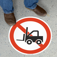 This easy-to-spot large sized SlipSafeâ„¢ Circular Floor Sign is ideal to inform that the area is a 'No Forklift Traffic Zone'.