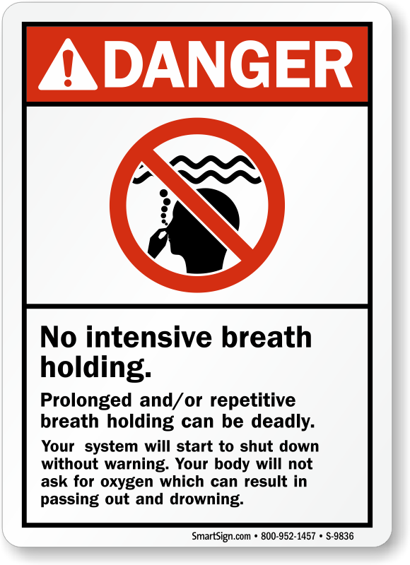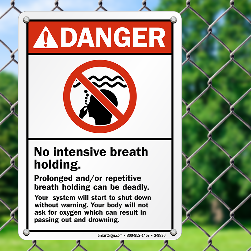 Inexperienced swimmers and kids can engage in breath-holding competitions at pool. Through this bold sign, aware every one of the dangers involved in intensive breath holding and reduce your liabilities.