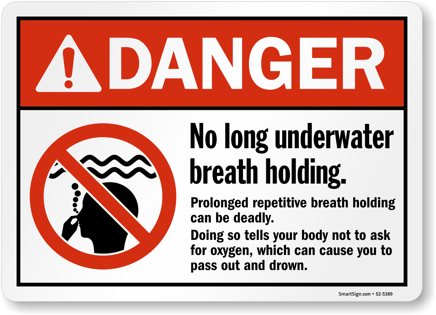 Danger Pool Sign effectively recognizes the dangers of competitive breath holding and discourages everyone participating in these activities.