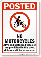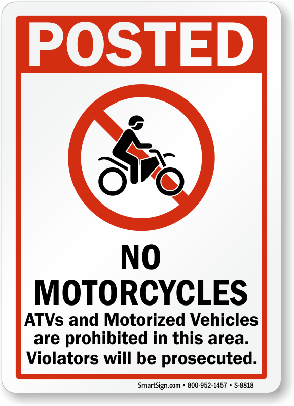 Prevent motorized vehicles, ATVs and motorcycles from accessing a designated area. Install this 'No Motorcycle sign' to communicate your message in the simplest yet the most effective way.