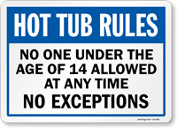 Hot Tub Rules Sign: No One Under The Age of 14 Allowed At Any Time, No Exceptions S2-5383