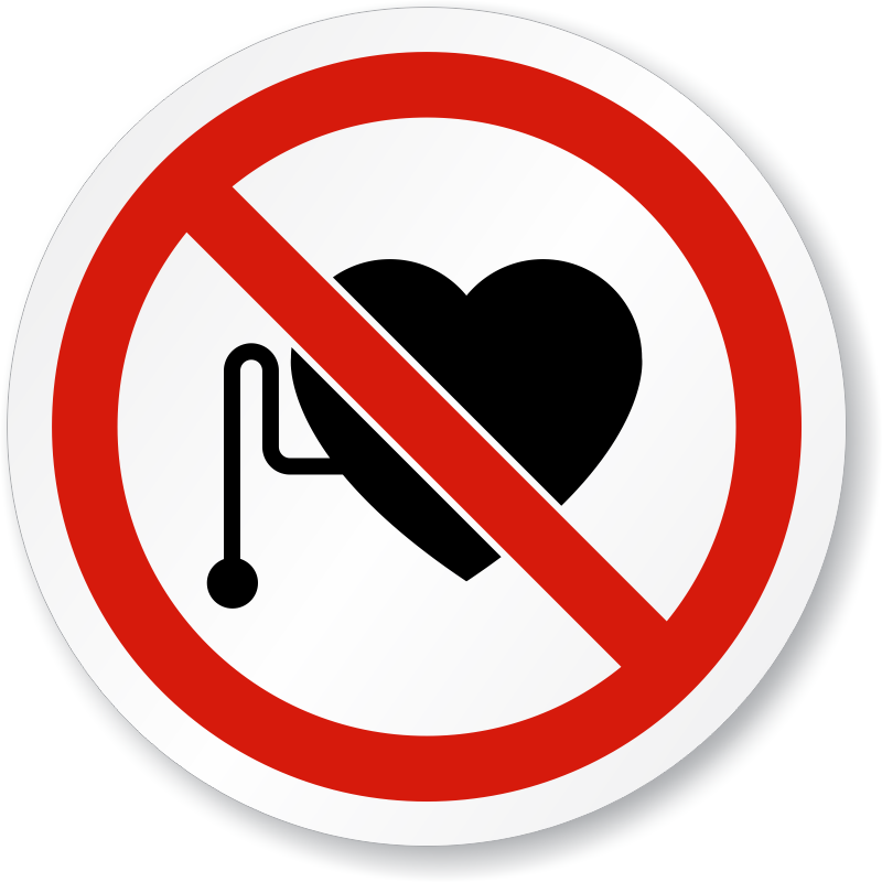 Install this ISO Prohibition Sign with No Pacemakers symbol in areas of magnetic fields and keep everyone safe.