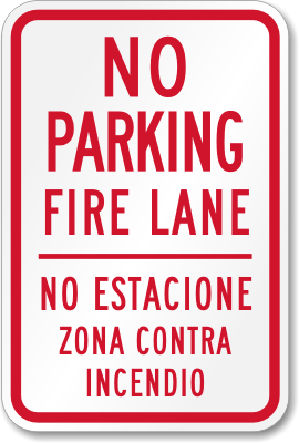 Bilingual Restricted Parking Sign: No Parking Fire Lane / No Estacione Zona Contra Incendio Learn More...