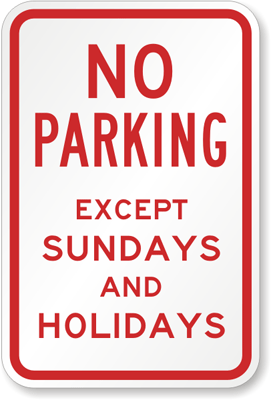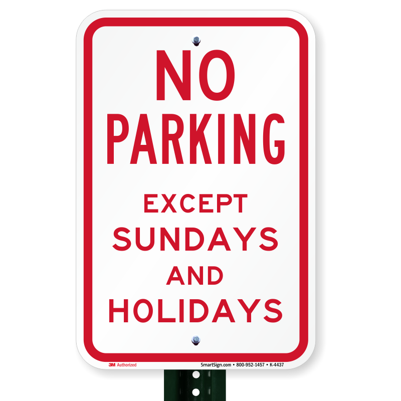 Parking Sign: No Parking Except Sundays And Holidays K-4437 Learn More...