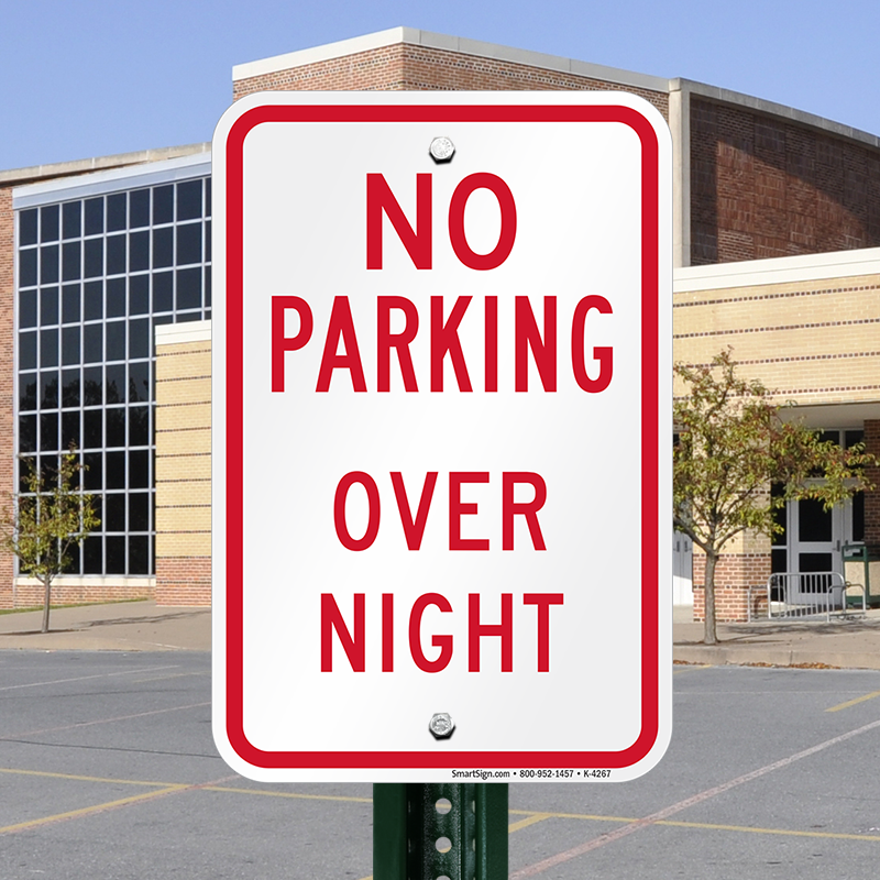 Control your parking area and decrease nighttime liability. Post a bold, attention-grabbing No Parking Overnight sign to enforce your parking rules at all times.