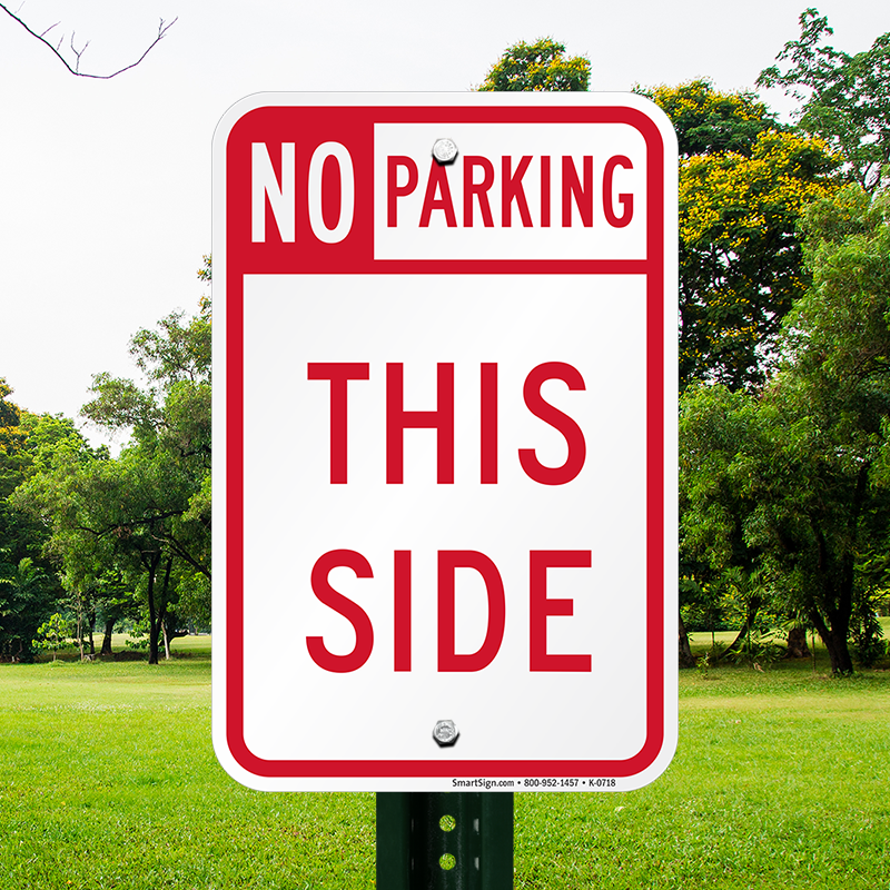 Use this Parking Prohibited sign to clearly indicate that no parking is allowed in that side of the parking area. Easily mount on any wall, post, fence, or u-channel with the help of pre-drilled holes.