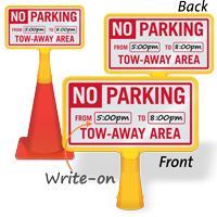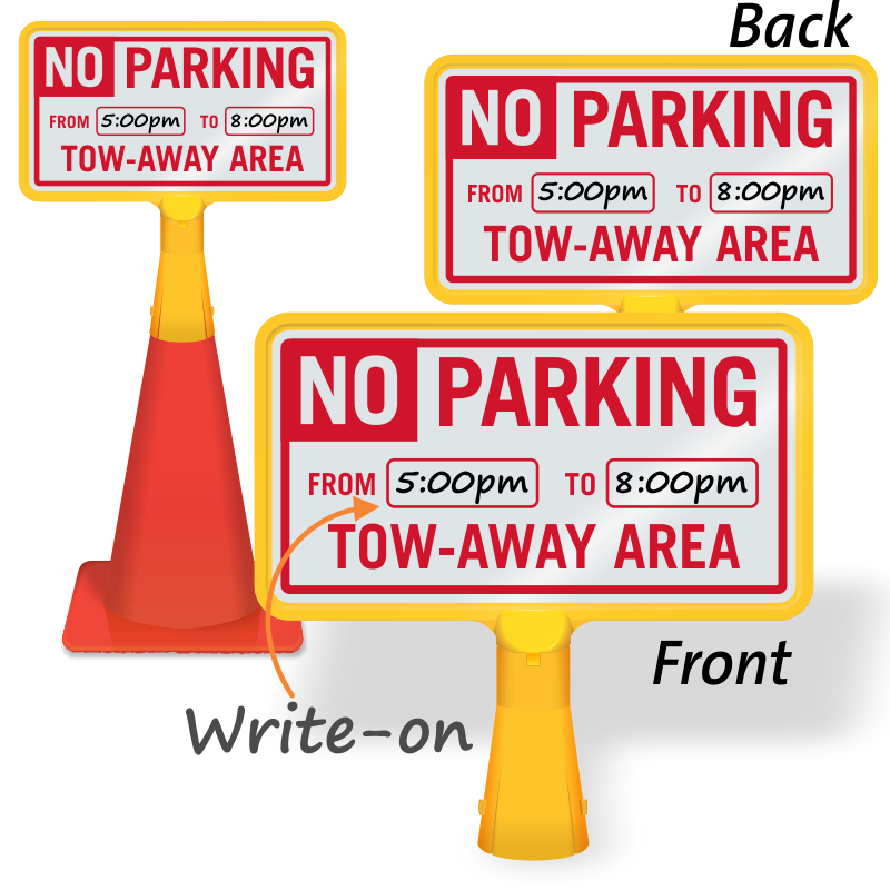 Inform vehicles entering your facility about the tow away zone with this highly visible no-tip, portable No Parking Cone Sign.