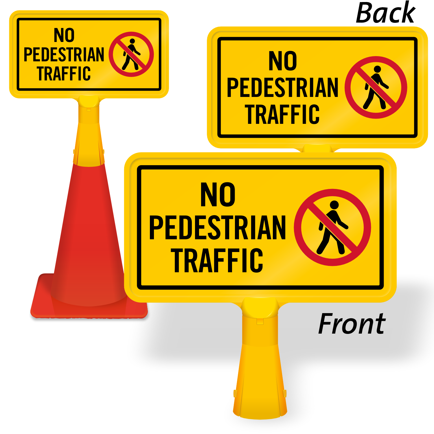 Keep pedestrians away from hazardous areas with this highly visible no-tip, portable Traffic Cone Sign in areas where pedestrians are not allowed.