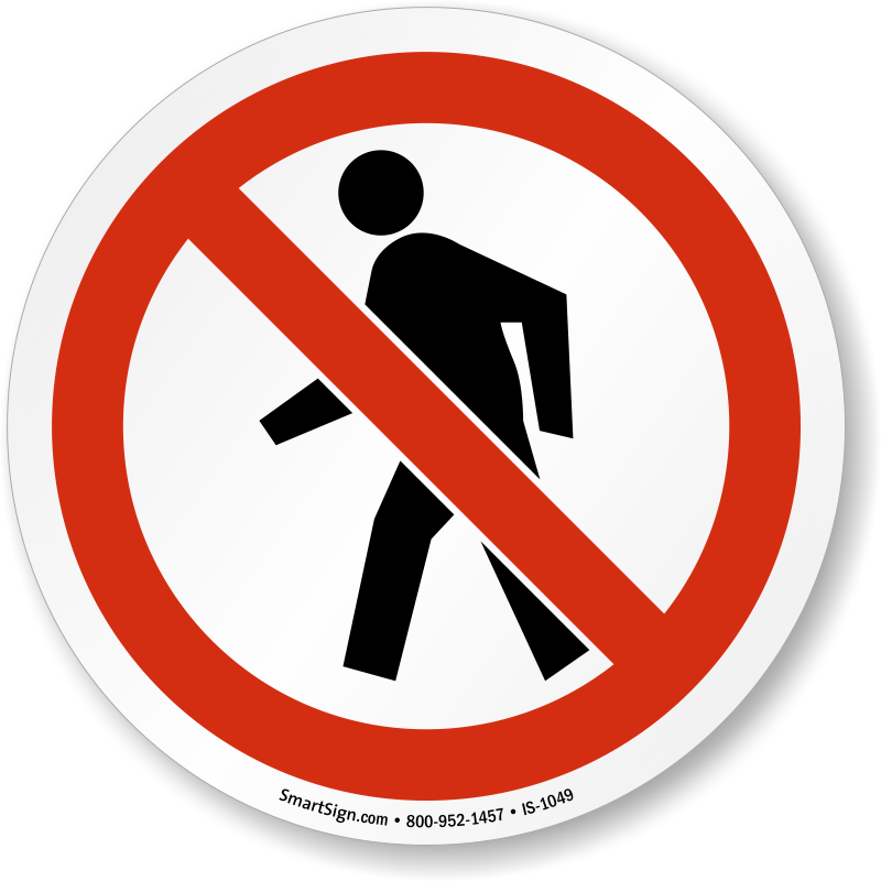 Prohibit pedestrians from entering high traffic zones by installing this ISO Prohibition Sign at a visible location in the area.