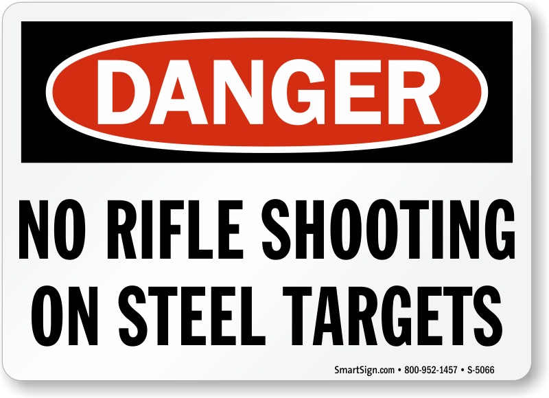 Stop backscatter during shooting practices and prevent severe injuries. Use this OSHA Danger sign to clearly communicate that rifle shooting is not allowed on steel targets.